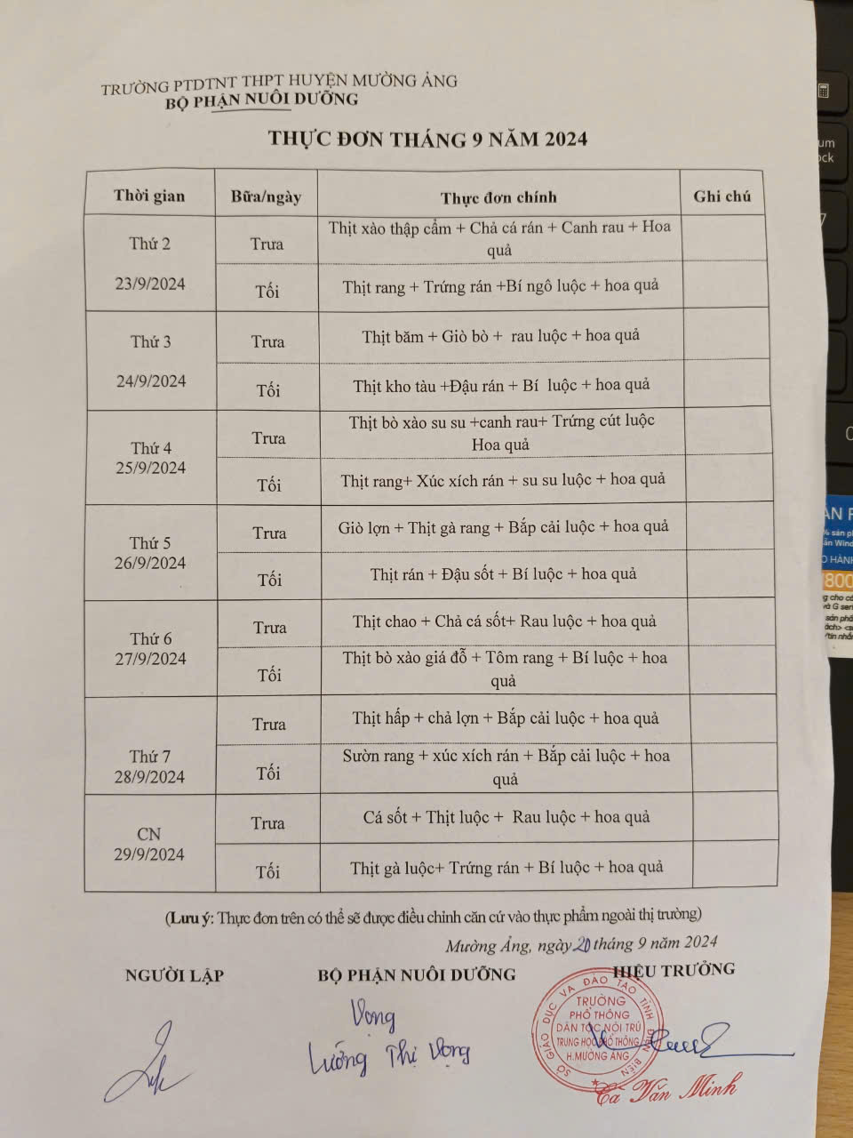 Thực đơn tuần 3 tháng 9 năm 2024: