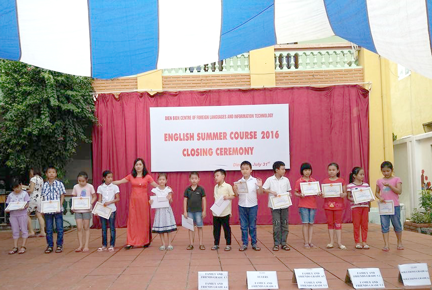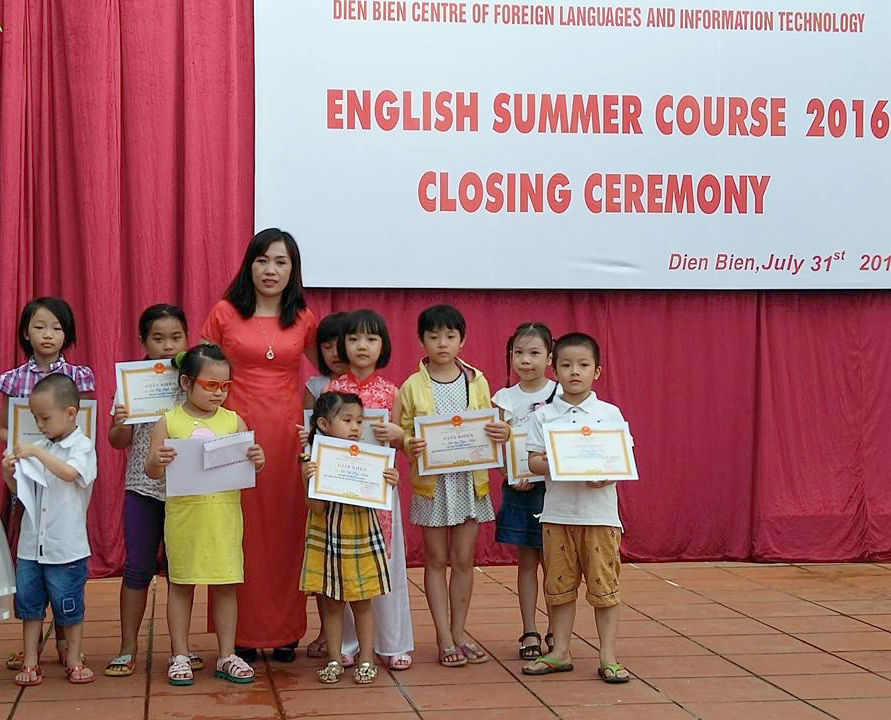 ENGLISH IS FUN! ENGLISH FOR EVERYONE!!! Đây chính là mục tiêu đào tạo Tiếng Anh của Trung tâm Ngoại ngữ - Tin học tỉnh Điện biên. Học Tiếng Anh ko hề bó buộc. Các em học sinh được sống, học tập trong một môi trường Tiếng Anh thân thiện, được hòa mình trong ngôn ngữ tiếng Anh. Đó không phải là những giờ học theo khuôn mẫu, chỉ ghi ghi chép chép. Mà ở tại Trung tâm Ngoại ngữ - Tin học các em được giao lưu được thực hành được tiếp cận với những phương pháp tốt nhất, được giao lưu với người nước ngoài. Kết hợp với việc áp dụng phương pháp giảng dạy hiện đại, hấp dẫn phù hợp với lứa tuổi Mầm non, Tiểu học và Trung học cơ sở, khóa học thực sự là một khoảng thời gian bổ ích, lý thú cho các em trong dịp hè. Mục tiêu của khóa học này là giúp các em học sinh hứng thú và ham mê với việc học tiếng Anh song song với việc hình thành và phát triển các kỹ năng cơ bản nhất để các em có thể tự nhiên sử dụng ngôn ngữ này. Giáo trình phù hợp được những giáo viên kinh nghiệm, nhiệt tình trình bày sinh động, dễ hiểu cùng với hệ thống giáo cụ trực quan phong phú đã cộng hưởng và mang lại hiệu quả cao. Những đặc điểm nổi bật trên đã cuốn hút các em học sinh đến với lớp và các em mong từng ngày đến lớp gặp cô giáo và các bạn để được cùng nhau học tập và khám phá tiếng Anh.