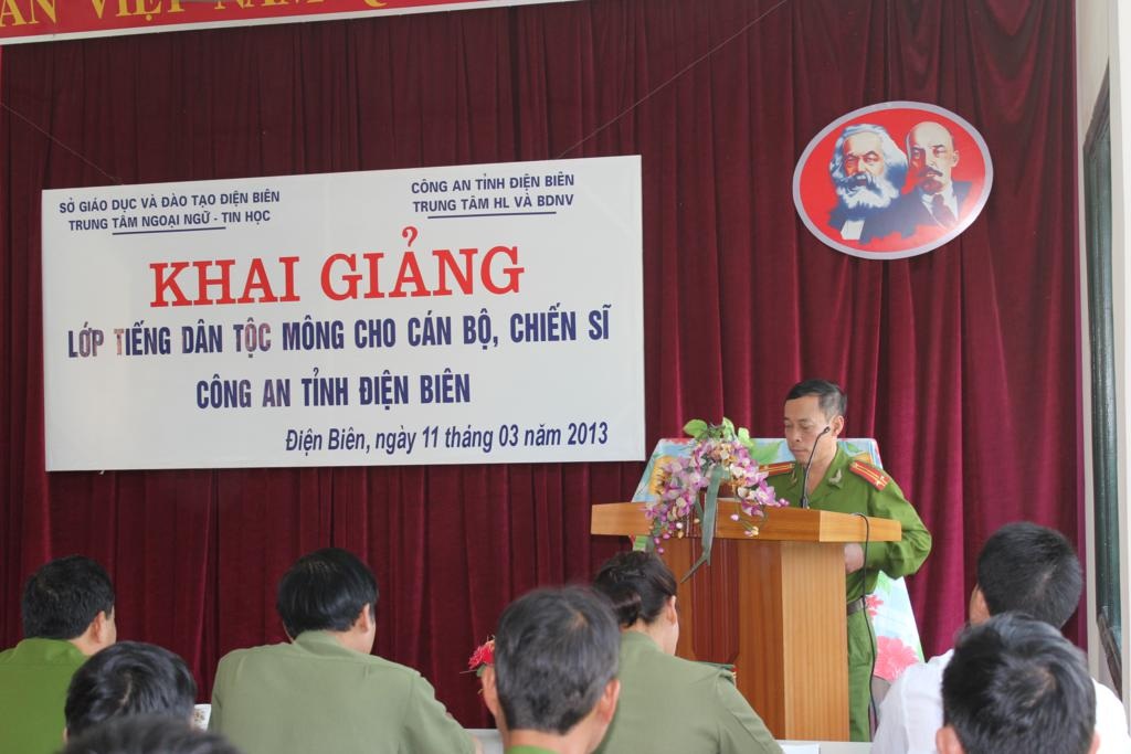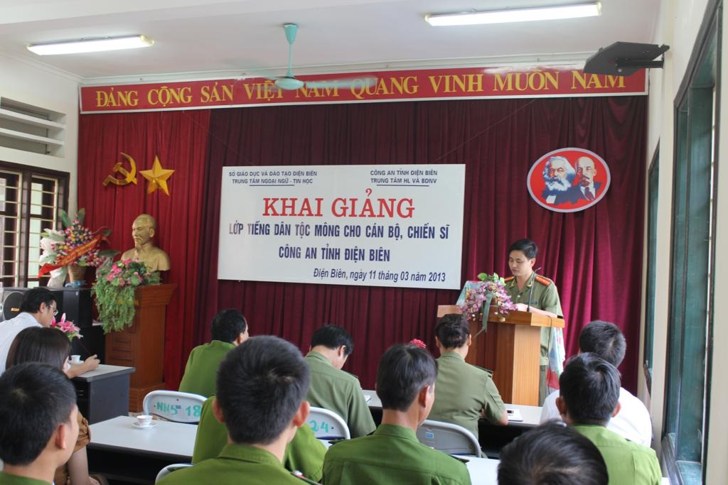Được sự nhất trí của Ban giám đốc Công an tỉnh Điện Biên và Ban giám đốc Sở Giáo dục và Đào tạo tỉnh Điện Biên, ngày 11 tháng 3 năm 2013 Trung tâm Ngoại ngữ-Tin học tỉnh Điện Biên đã tổ chức Khai giảng khóa đào tạo tiếng dân tộc Mông cho 27 cán bộ, chiến sĩ  Công an tỉnh Điện Biên. Đây là khóa học thứ 3 của Công an tỉnh Điên Biên được tổ chức tại Trung tâm Ngoại ngữ - Tin học.