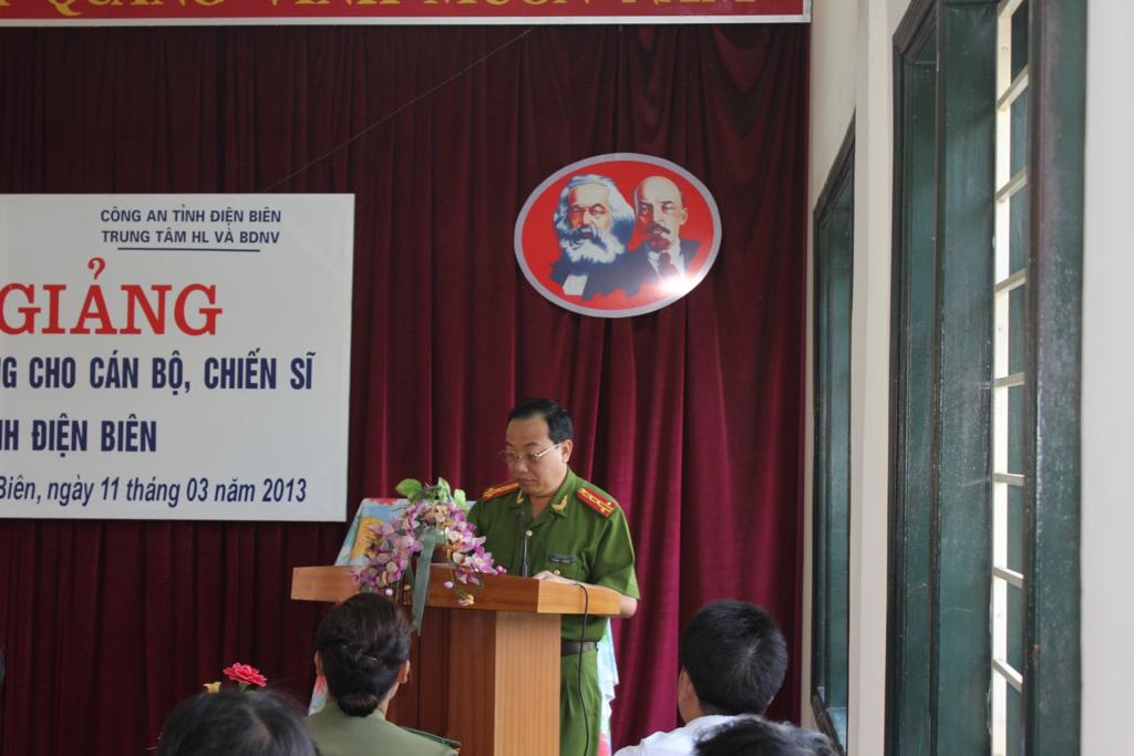 Đến dự Lễ khai giảng Đại tá Lò Văn Khụt, phó giám đốc Công an tỉnh Điện Biên đã phát biểu, chỉ đạo, quán triệt và giao nhiệm vụ cho các chiến sĩ tham lớp học.